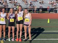 Pictured following her fourth-place finish at all-states, Mia Costa (520) was recently awarded the MSTCA Scholarship following her strong efforts on the track and in the class room at Walpole High School. Photo by Keith Brouillard.