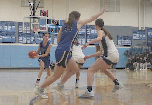 Entering the second half, the Raiders were facing a daunting score of 9–54. Monica Gibbs made a layup and sophomore Rory Hartnett rebounded another shot while managing to keep the ball inbounds. On one play, Addisyn Murphy and senior Jazmin Hancock were all over a Medfield player bringing down the ball and a minute later Hancock made a shot from under the basket. The Raiders had a particularly great play near the end of the quarter when senior Emily Darin cut to the basket and Gibbs passed it to her for a layup.