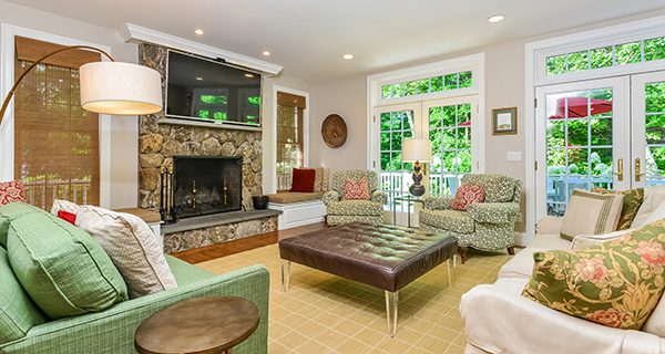 • Open-concept family room with 3 sets of French doors to wrap-around porch.