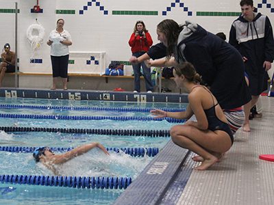 On Friday, the Dover-Sherborn girls’ team beat the Warriors 100–76, taking the first two races, the 200 yard medley relay and the 200 yard freestyle. The Warriors got their first win in the 200 yard individual medley, but were beaten in the next two events, the 50 yard freestyle and the 100 yard butterfly. The girls then earned first place in the 100 yard freestyle but the Raiders took the 500 yard freestyle, the 200 yard freestyle relay, the 100 yard backstroke, the 100 yard breaststroke, and finally the 400 yard freestyle relay.
