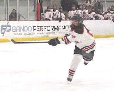 The Raiders started out strong with a goal by freshman forward Addie Foster, assisted by senior Caitlin Hamburger. Four minutes later, Hamburger scored her own goal, assisted by captains and fellow seniors Charlotte McDonough and Mia Prall. Not long after, however, the Flyers scored their first goal and brought the score up to 2–1. In net, senior Neva ten-Brinke made two saves in a row. Unfortunately, Framingham tied things up with 4.7 seconds left, which was a tough end to the first period.