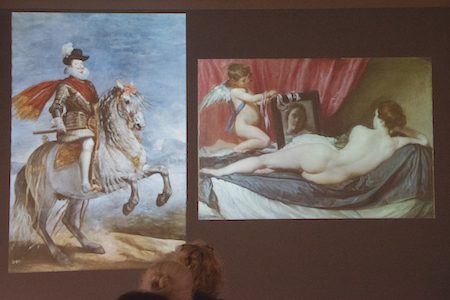 In showing two of Diego Velázquez’s pieces, Rokeby Venus and Felipe III a caballo (Phillip III on horseback). The subjects of each gave wildly different perceptions; while the man was triumphant, active, and dominant, the woman was passive, vulnerable, seductive, and nude. Because men were typically behind the portrait, they put women in the position of being lesser than, until they took the brush for themselves.