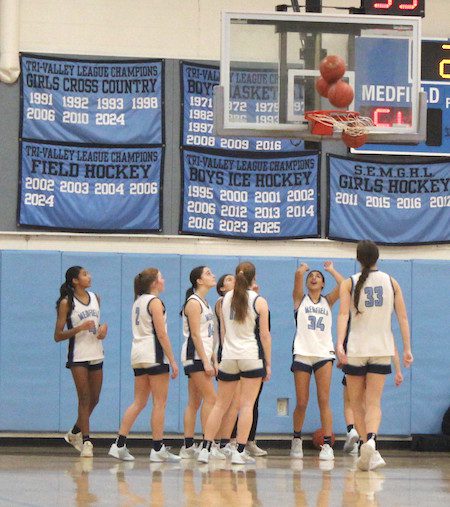 In the fourth quarter, Samantha Manning swiped at the ball and got the Holliston player to give it up, and later nabbed it for a layup on another play. Ava Pender made a three-pointer, Ava Kraus made a steal, Annie Smits put away a rebound, and the crowd was cheering for Kraus when she scored a three-pointer.