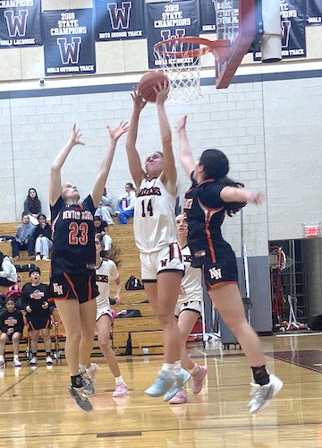 When the second half began, the Raiders were down 22–34, but they closed steadily in on the Tigers throughout the third quarter, made even more exciting by both teams having vocal and energetic benches cheering on their teammates as the score rocked back and forth. After Captain Maria Gianarikas drained her third three-pointer of the quarter and brought the score to 35–36, Newton North had to call a time-out. Eloise Haverkamp and Penny Casgar both made good rebounds while Captain Lily Andrews regained possession for Wellesley by making a steal in the offensive end. By the time the third quarter ended, the Raiders were in the lead, 40–38.