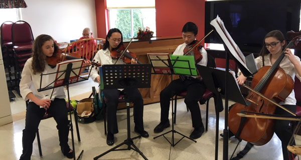 On Friday December 15, five very talented high school musicians serenaded seniors during lunch. Laurel Barnett, Larry Shue, Michelle Bernard, Hannah Stairs and Will Vaccao played holiday music for over 45 minutes while Westwood seniors sat back and enjoyed the concert.