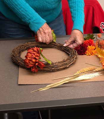 Everyone’s wreaths came out unique, despite starting with all the same materials. Some created grand bouquets in a circle, but others used the bare base as a feature and accented it. It was an explosion of warm colors and bright smiles, and everyone had décor to hang on their doors for the season.