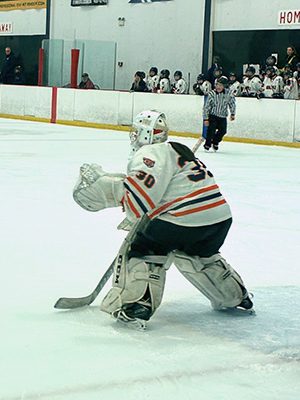 Medfield broke the ice early in the second to go up 1-0. Following that tally Medfield peppered Michienzi for two more minutes but Nadia was up to the task to keep the deficit at one. The Lady Timbs came right back to knot the score at the end of a power play. Kate Schneider made a nifty pass to Caroline Sullivan who buried it. The Lady Warriors went ahead again 2-1 with the Lady Timbs then tying it up at 2. Freshwoman Eva Karacaldis smoked a wrister from the top of the right wing circle to the far side top corner. Both teams headed to the final period all squared at 2.