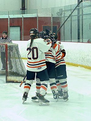 The separate conference neighboring towns haven’t played each other for two years in girls hockey.
