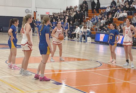 New head coach Sean McInnis takes the reins of the girls’ team this season as ten year veteran Dave Wall moved over to the Braintree boys’ team. McInnis has instituted an up-tempo, pressing and running system which has borne fruit for the balanced Timberwolves’ squad.