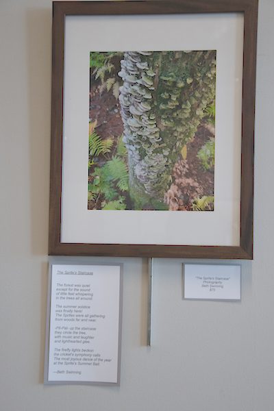To celebrate the local talent, the staff hangs the pieces on the first floor of the library for everyone to enjoy, and even buy if one speaks to you. This year the show was done a little differently. It featured ekphrastic poems, ones written by locals in response to the pieces. These ranged from local writers to students from the Martha Jones School, and all made you look at the pieces differently.