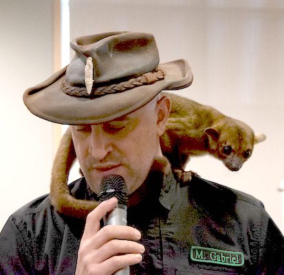 Gabriel brought out a creature that he is one of the only people in the state licensed to care for, and was a bit timid, Boo the kinkajou. Also called honey bears, Boo certainly lived up to that by devouring the applesauce brought out for him. Either way, this adorable mammal is sadly common in illegal pet rings, but when they get out people like Gabriel give them good chances at a nice life.